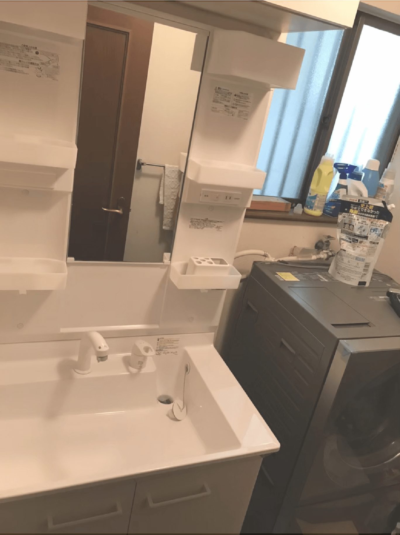 久喜市での洗面台工事作業の写真となります。